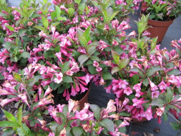Les variétés compactes de Weigelia sont bien adaptées à la culture en bac, égayant une terrasse ou un balcon ensoleillé. Un mélange de tourbe et de sable favorise leur enracinement.